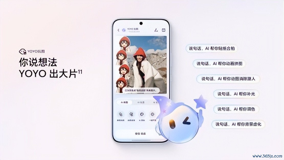 凭借YOYO玩图的聪慧技艺,用户只需语音指示即可完成动图拼接、布景虚化、补光调色等操作,一句话YOYO就能帮你出大片。同期,AI图生视频功能还能将静态像片秒变无邪视频,赋予影像更厚情怀抒发。